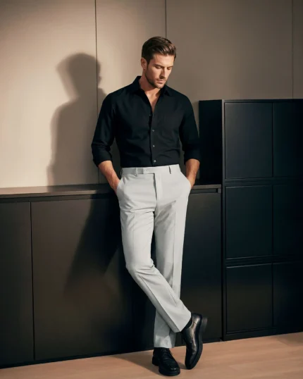 Achieve a timeless professional look with our classic-fit men’s formal pants. They feature two spacious side pockets for convenience, two